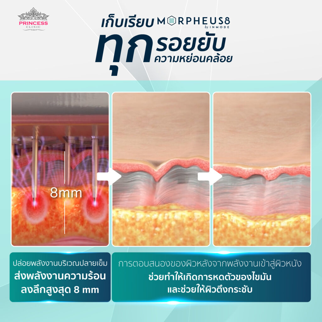 • Morpheus 8 สามารถยกกระชับผิวได้ลึกถึงชั้นไขมันใต้ผิว